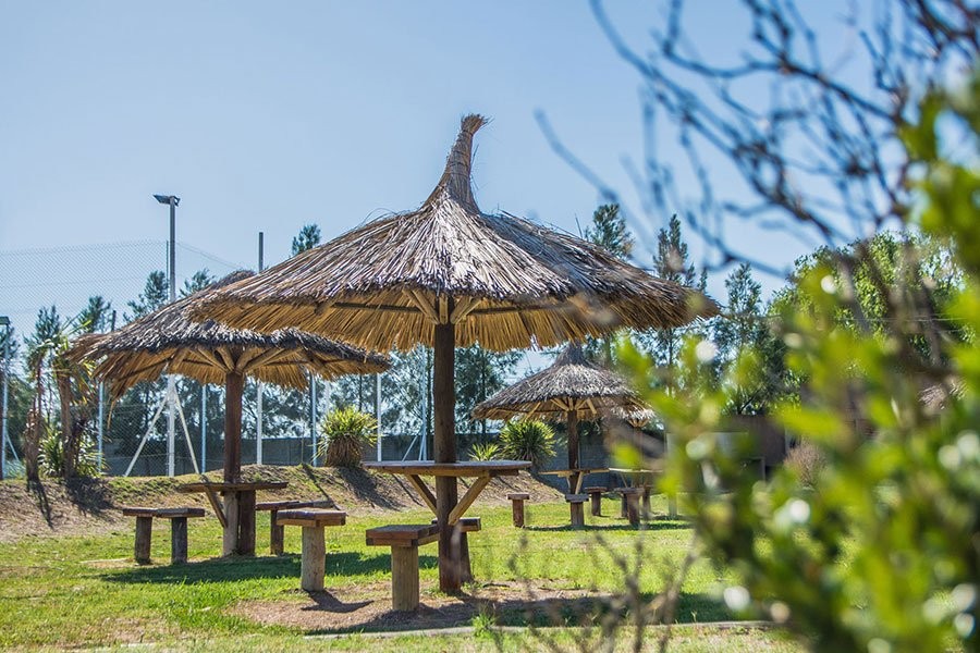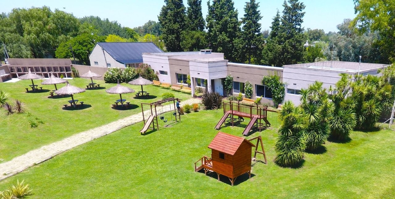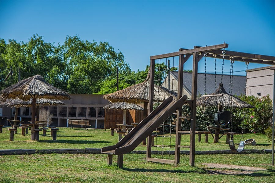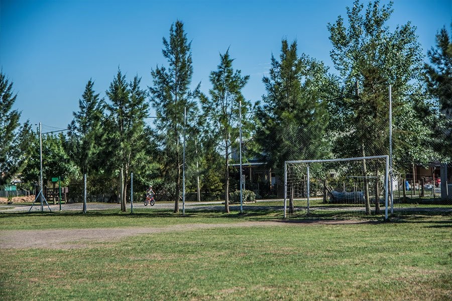 - Área de uso común, con, cancha de fútbol, parrillas con mesas y sombrillas al aire libre, quincho con parrilla equipado para 50 personas aprox. con mesas y bancos de madera, heladera, freezer y cocina.