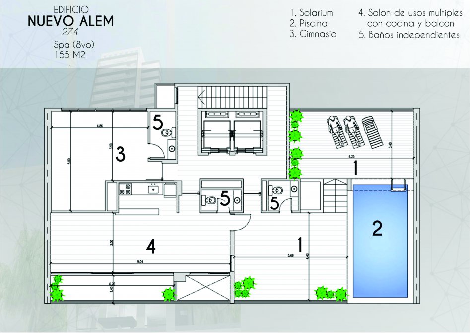 El edificio cuenta con elevador para discapacitados, hall de entrada de doble altura, 2 ascensores amplios de última generación, piso exclusivo de aménities ( piso 8 ) equipado con gym, sum, jacuzzi, duchas, terraza, solarium y piscina, 2 niveles de cocheras con portones automáticos y grupo electrógeno.