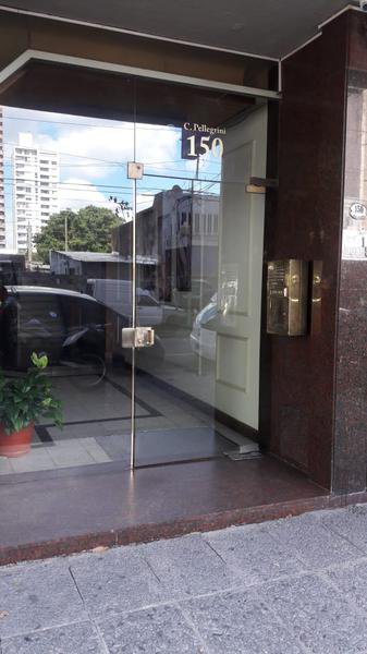 Cómodo y Luminoso departamento 2 Amb ubicado sobre la calle Pelegrini en 9 piso contrafrente, cuenta con cocina con amoblamiento sobre y bajo mesada, lavedero independiente, spar, termotanque nuevo y actualización en artefactos en baño y cocina, amplio living comedor con A.A., dormitorio c/ placard con pisos de parquet , ventilador de techo y baño completo. Buen Estado Gral. VENTA DIRECTA. Ubicación: a 100 mtrs de Estación del Ferrocarril y Peatonal Laprida, a 200mtrs de Av. Alte. Brown.