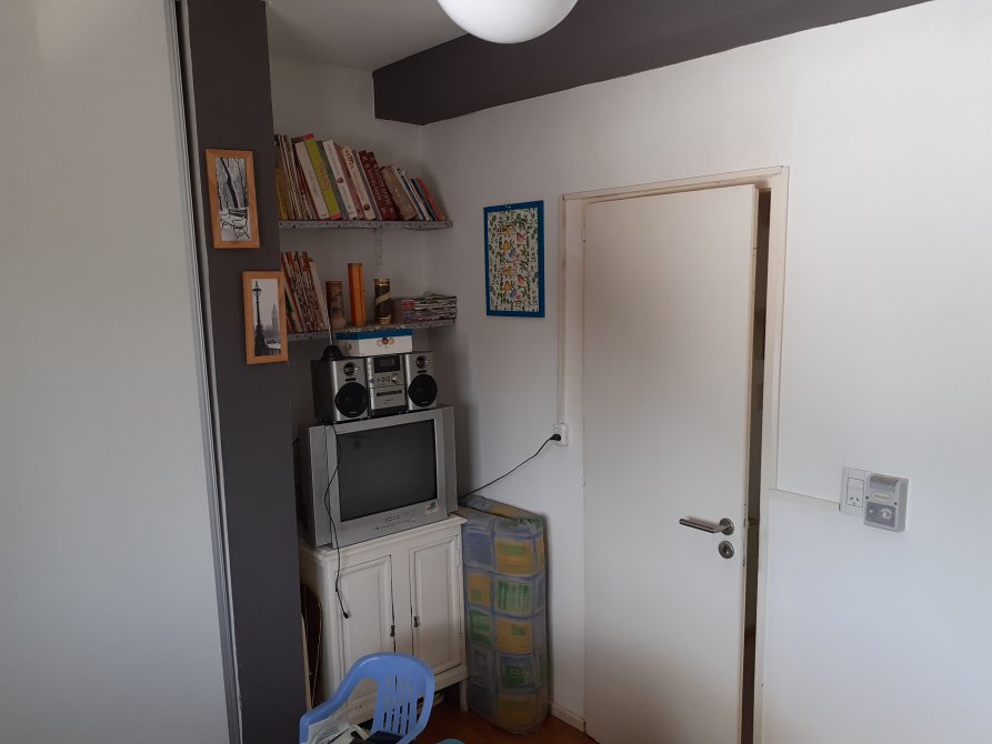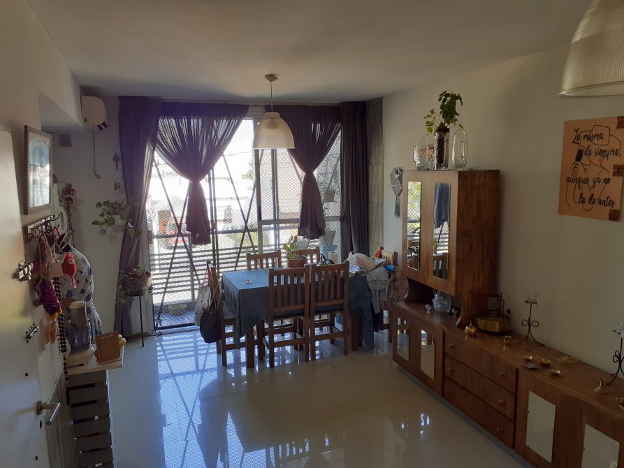 Dpto en VENTA. 1° Piso x Escalera. Consta de Cocina comedor con muebles sobre y bajo mesada (6 x 3) con salida a balcón al frente, lavadero, baño completo con bañera (2.11 x 1.52), dormitorio con placard y pisos flotantes (4 x 3.45) con espacio para TV, escritorio o mini placard. Cochera semicubierta. Balcón 4 mts. Posee calefacción por A.A. Antigüedad: 4 años. Excelente Estado. VENTA DIRECTA. Se tomaría en parte de pago dpto. en Mar del Plata.