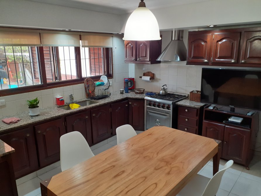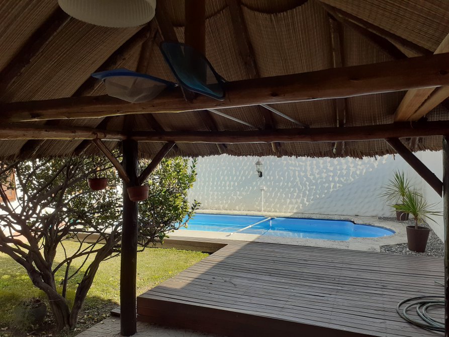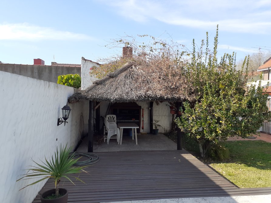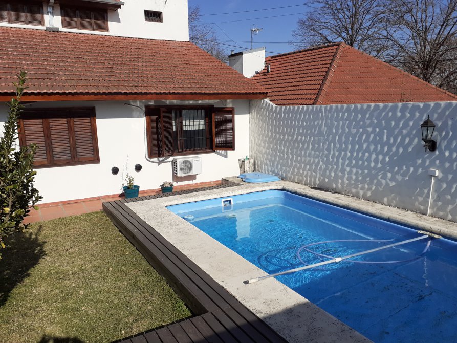 Chalet de 6 ambientes en Venta conformado en dos plantas. Sup Total 330 m2. Sup Cub: 253 m2 aprox. Lote 12 x 28 mtrs. Planta baja: Amplio living comedor al frente de (7.44 x 3.64), pisos de madera, amplios ventanales también en madera, cocina comedor con vista al parque, muy bien equipada con muebles de sobre y bajo mesada de buena calidad, baño ppal con ante baño de (2.26 x 1), sector de bañera, inodoro y bidet (2.22 x 1.69) moderno en muy buen estado, cuarto principal (3.92 x 2.74) en suite (2.22 x 1.57) con orientación norte vista al parque, pisos de madera y un amplio placard, cuarto o escritorio de (2.49 x 3.25) con pisos de madera, placard y orientación norte. La Planta alta: esta constituida por dos cuartos amplios con vista al frente (3.52 x 3.74 y 3.64 x 3.82) respectivamente, un comodo play room de (4.59 x 4.11) y un baño completo con ducha, inodoro, bidet y doble bacha. Garage cubierto para dos autos medianos, pequeño lavadero con salida al parque, el cual cuenta con un quincho semicubierto con parrilla para unas 20 personas aprox, y una piscina con sistema de filtro instalado. El estado de la propiedad es muy bueno, sus instalaciones fueron actualizadas y no requiere obras ni reformas.