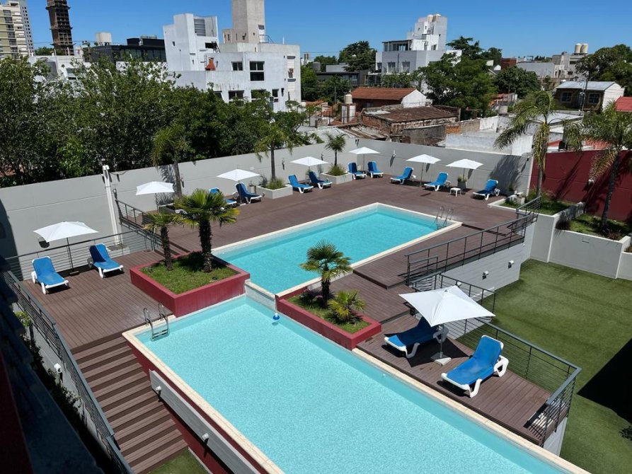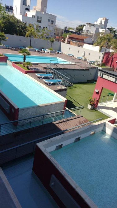 MODERNO DISEÑO. Luminoso departamento de 3 ambientes al Frente en 3° Piso con Cochera Fija Subterranea. Sup. Total: 68.22 m2. Sup Semicub. 14.88 m2 (balcón). Living comedor (6.15 x 3.10) con vista a gran balcón corrido con parrilla ( 1.20 x 12.40 ), 2 dormitorios al frente con vista al balcón ( 2.95 x 3.15 y 2.90 x 3.05) ambos con placard, baño principal con bañera (2.00 x 1.50) y toilette de recepción (1.30 x 1.45), paso distribuidor (3.85 x 0.90) con placard, cocina muy bien equipada ( 3.45 x 1.50) posee extractor campana, cocina aristón eléctrica, alacenas y bajo mesada, barra dasayunadora con mueble debajo. Estado Gral: Impecable. Excelente Zona. Complejo Barón Center. Características generales: Caldera dual calefacción por radiadores ind. 2 A.A Split frio calor. Carpintería exterior de aluminio. Revestimiento cerámico de primera calidad en estar-comedor, dormitorios, cocina, baños. Ascensor de última generación. Seguridad y cabina exterior de vigilancia las 24hs. Salón de usos múltiples (SUM) ( 8000 x 20.00). Gimnasio. Piscina con Solarium (5.00 x 26.00). Piscina circular para niños. Espacio libre paraquizado. VENTA DIRECTA. APTO CREDITO BANCARIO. EXCELENTE OPORTUNIDAD ! ZONA - ESTADO – VALOR ( POSIBILIDAD DE FINANCIACIÓN 50%) Operación libre de gastos para el vendedor