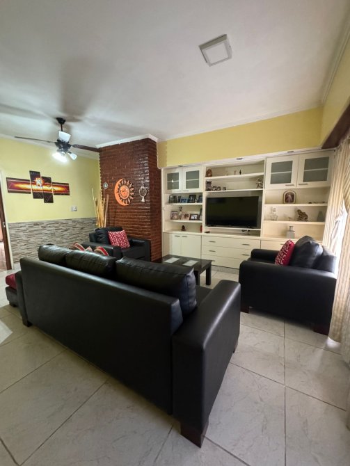 Propiedad 5 Amb en Venta. Sup. Total 270 m2. Sup Cub Aprox 170 m2. Entrada vehicular pasante para varios vehículos. En planta baja, estar comedor amplio al frente, dos dormitorios, baño completo, cocina comedor con muebles de bajo y sobremesada, 3 dormitorio o estudio, amplio quincho para 20/30 personas, lavadero y baño con ducha, patio y jardín. En planta alta, baño completo con ducha, estar comedor, dos dormitorios amplios con placard, orientados al frente y ambos con salida al Balcon terraza. Estado MUY BUENO. Ubicación en/ calles Int. Tavano y Falucho. A 200 mtrs Av. Juan XXIII.